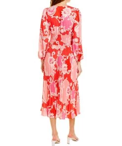 Best deal ๐ฏ Traffic People ๐ฉ women Biddy Belted Wide Neck ๐ Dress in Leaf Print ๐