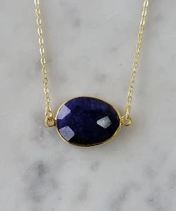 Coupon 👏 A Blonde and Her Bag Jewelry 👩 women Mrs. Parker Necklace in Sapphire – Brass Chain 😍