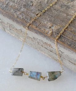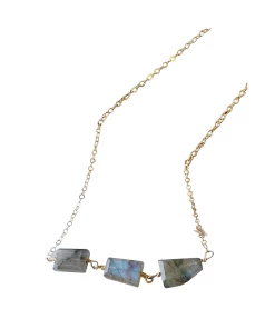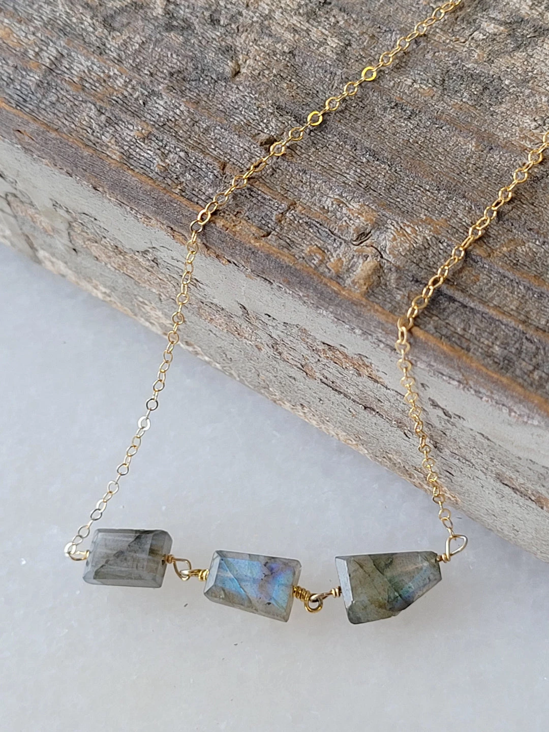 Three Labradorite stones hand-wrapped onto an elegant 14k gold chain.