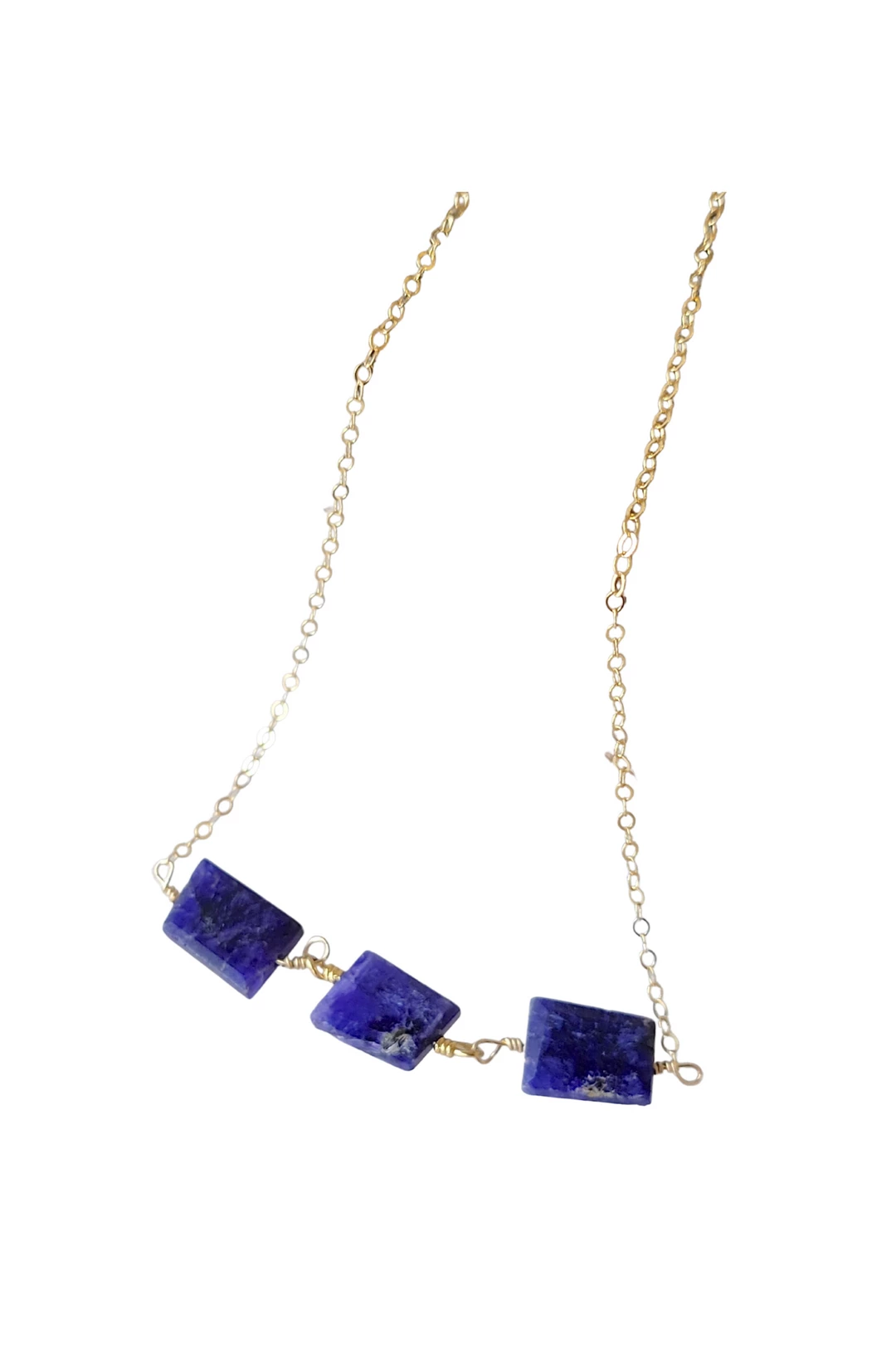 ThreeΒ Sapphire stones hand-wrapped onto an elegant 14k gold chain.