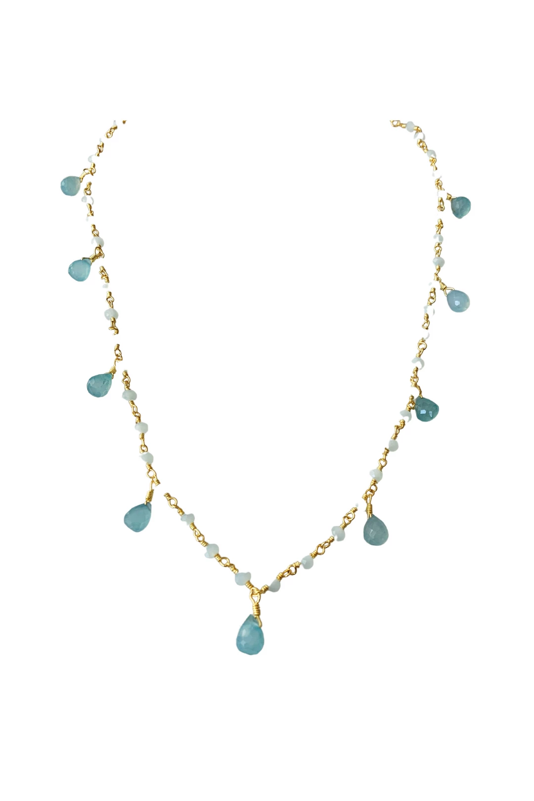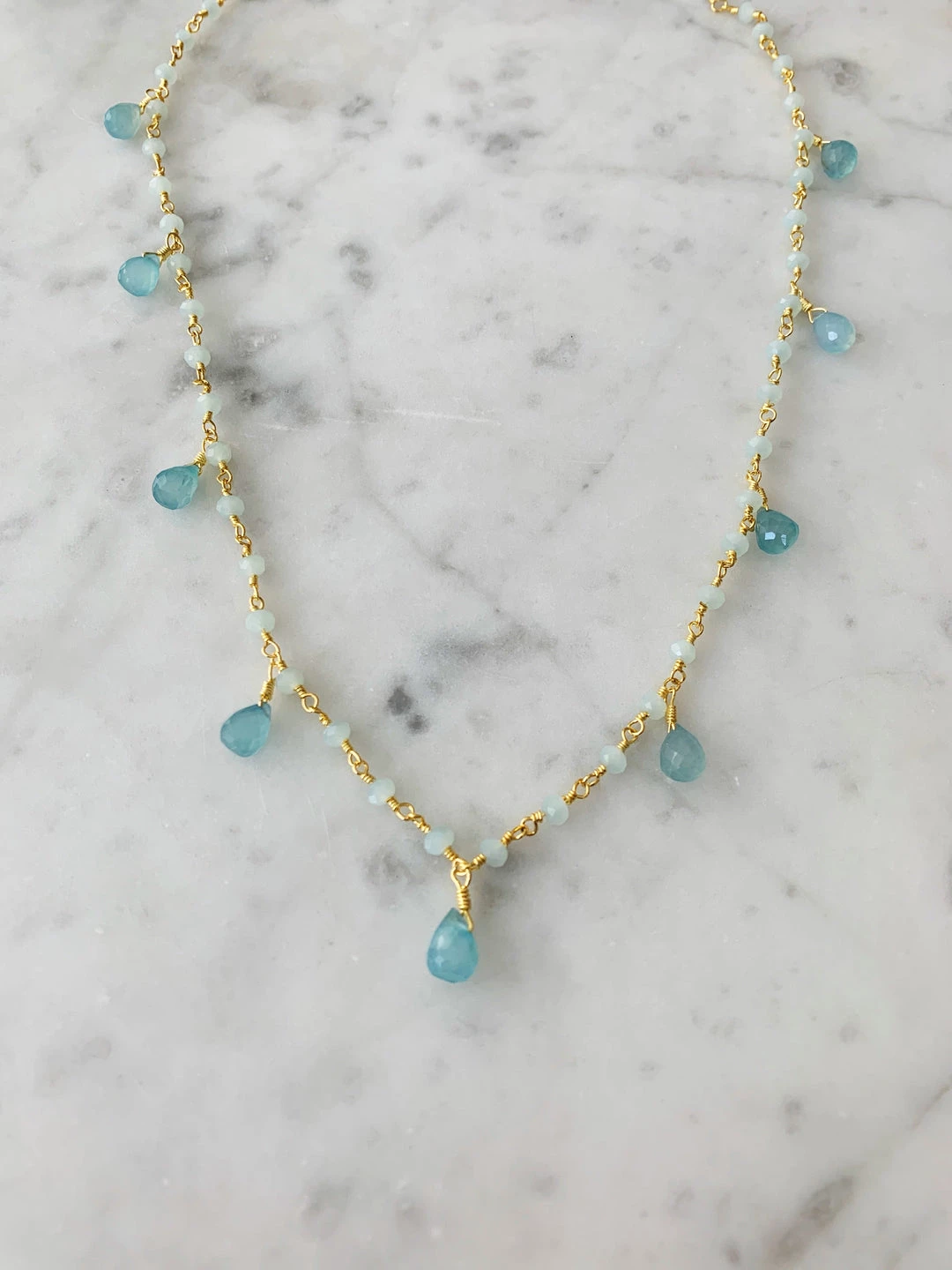 Balmy NightsΒ Chalcedony Teardrop Necklace in Gold.