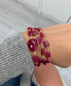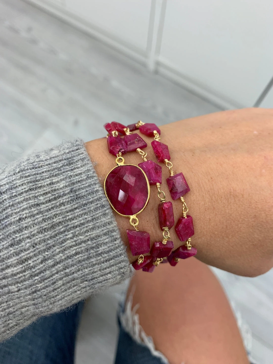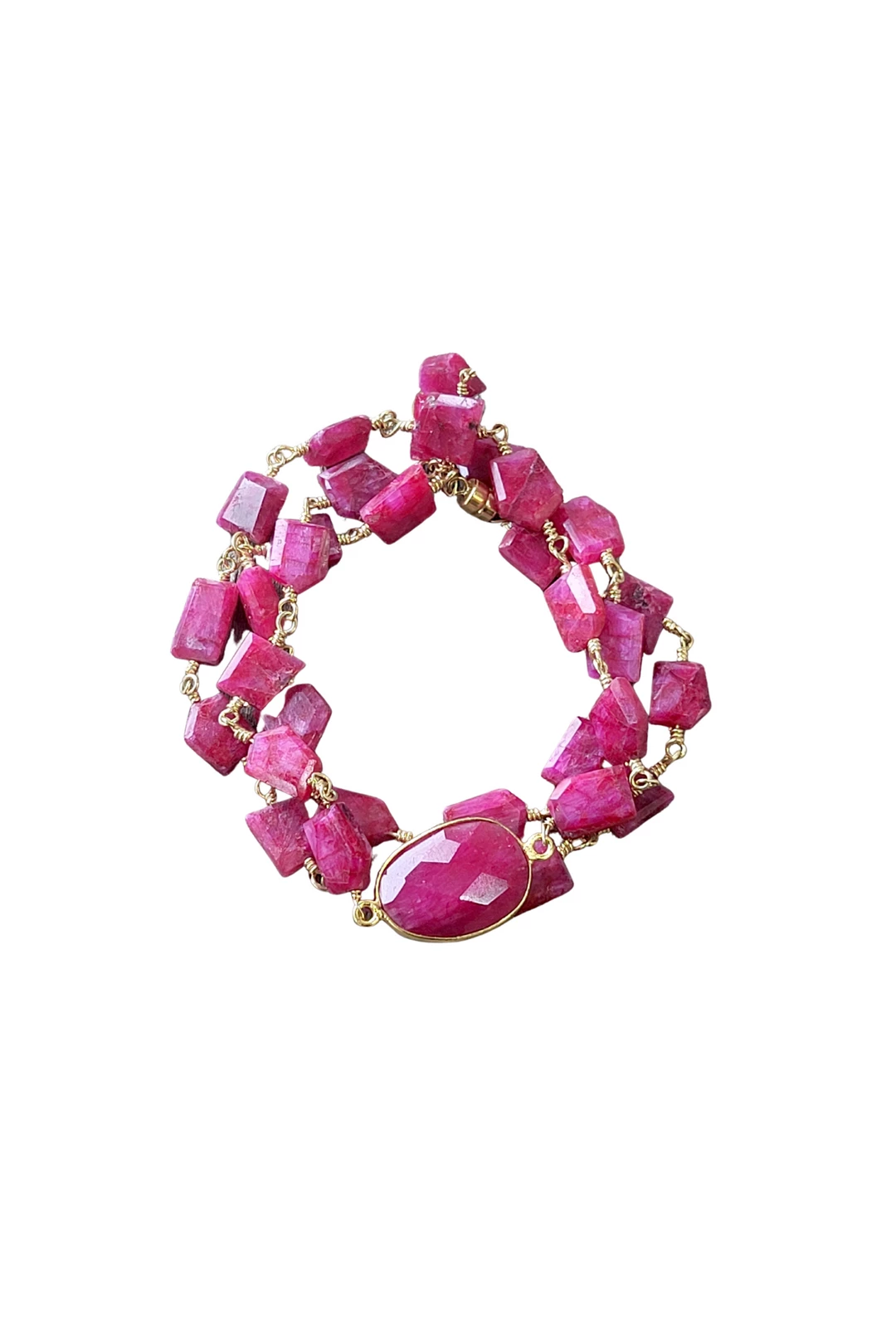 Hana Wrap Bracelet/Necklace in Ruby – Chunky Stone.