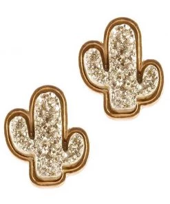 Iridescent Champagne Druzy Cactus Earring in Gold.