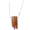 Gold dangle earring with 9 labradorite stones that form a single strand splitting into 3 tiers.