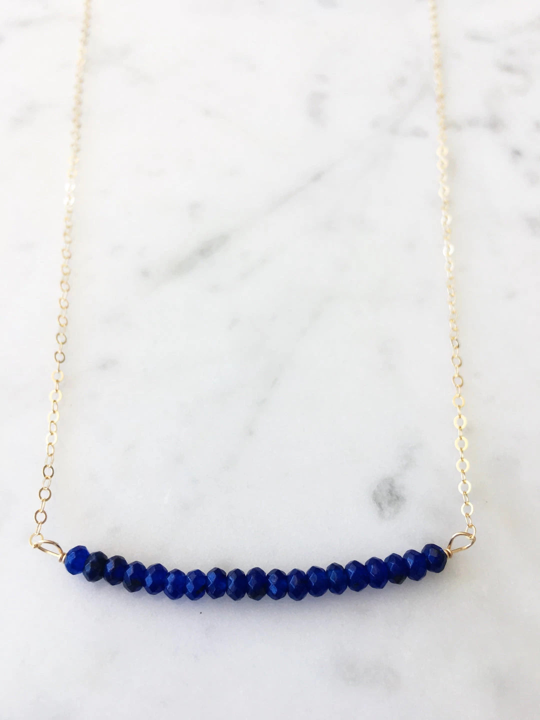 A 14k gold fill or sterling silver chain strung with petite semi-precious sapphire stones. The perfect necklace to be worn individually or layered.