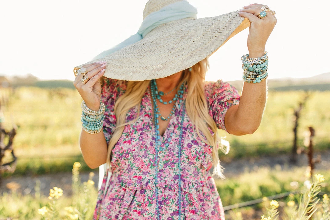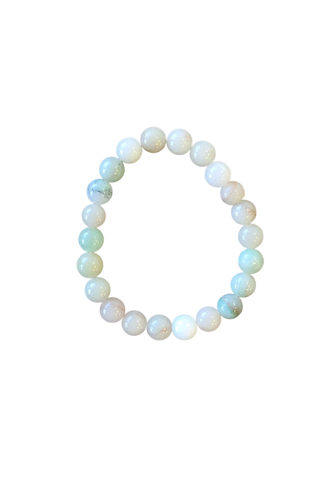 Genuine moss agate stretch bracelet with varying hues of light green.