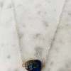 A semi-preciousΒ red mojave copper turquoiseΒ stone set in aΒ 14k goldΒ vermeilΒ bezel sitting on a 14k gold fill chain.