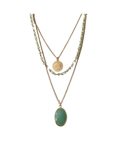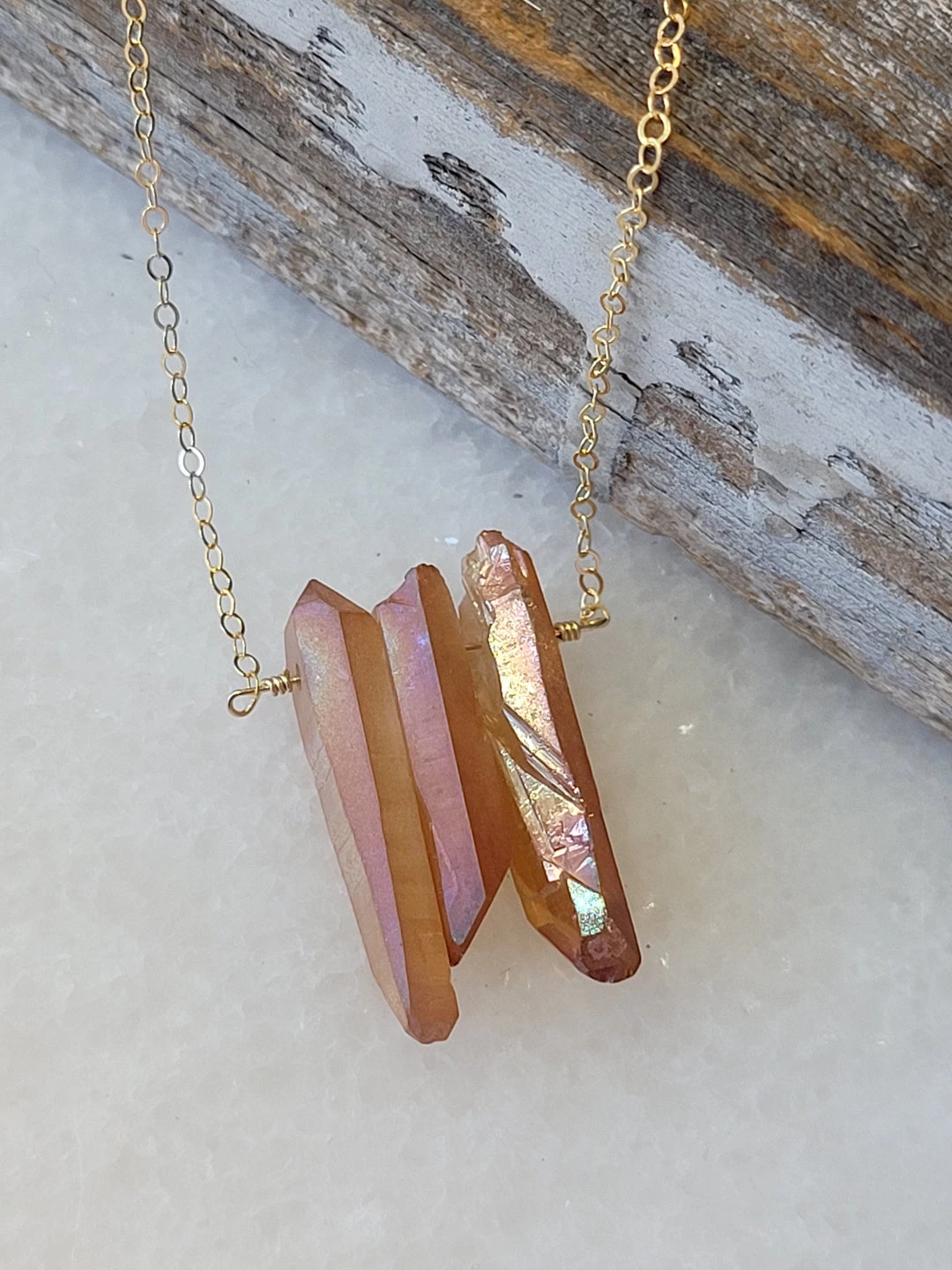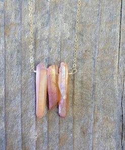 Three RawΒ Peach Quartz Crystal Pendant Necklace in Gold.