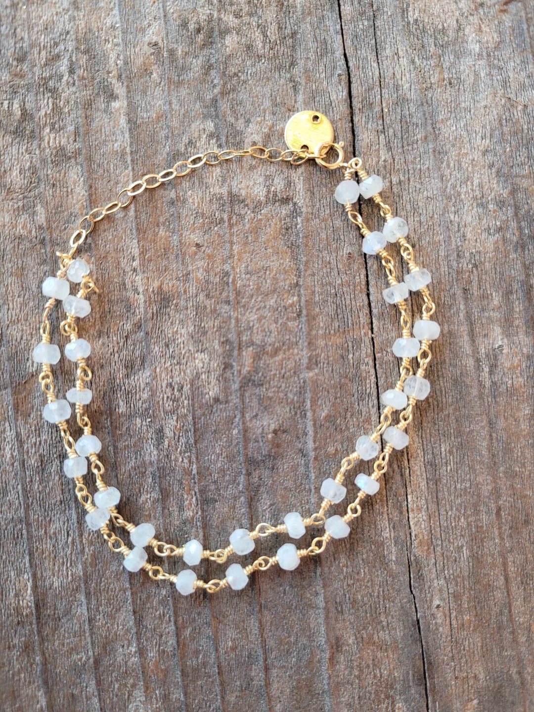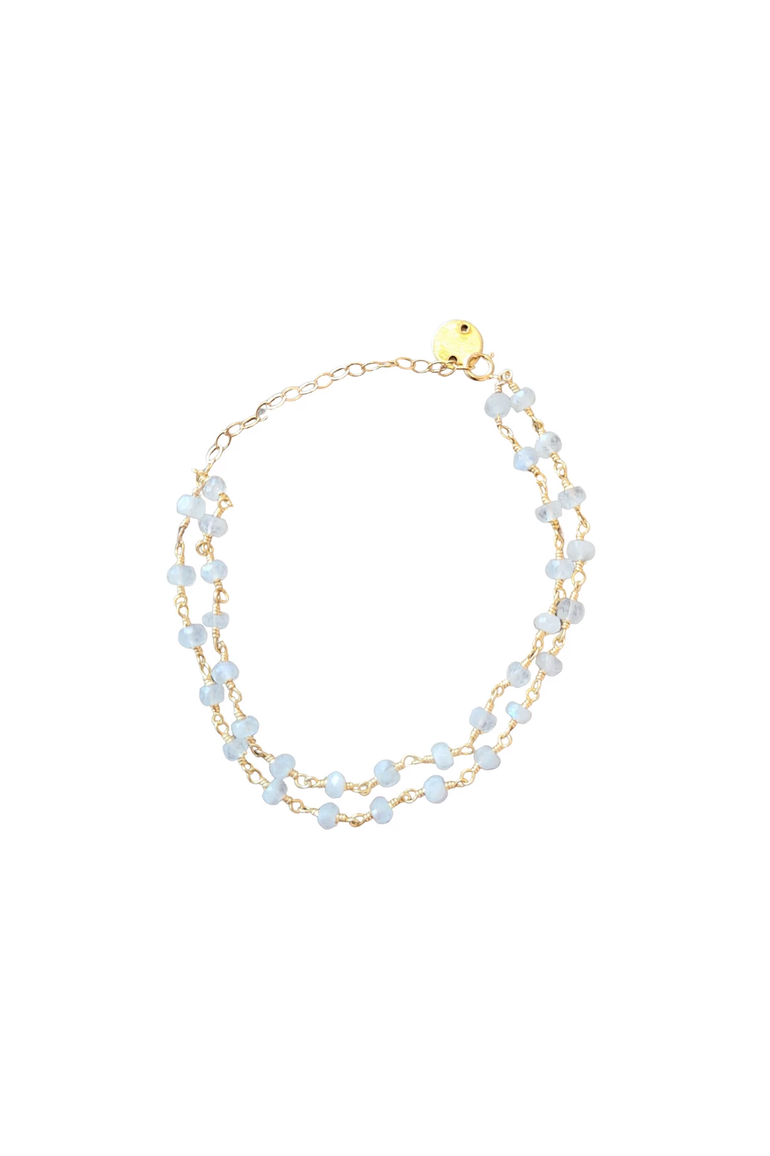 Delicate bracelet made of two semi precious wristlets with a coin accent extension for the perfect fit. Named after the town it was made in, Sausalito, meaning little willow grove or a place of abundance.