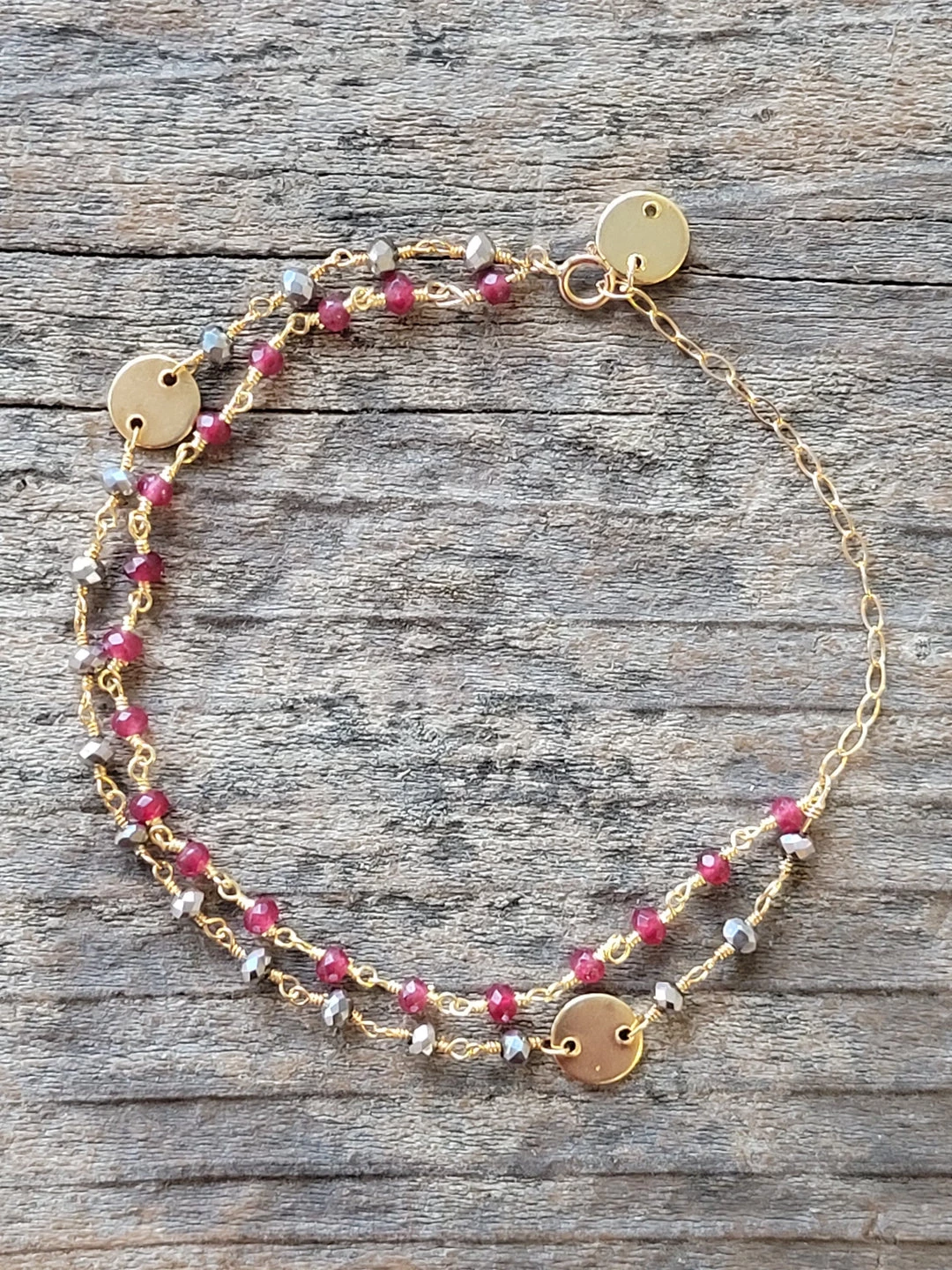Delicate bracelet made of two semi precious wristlets with a coin accent extension for the perfect fit. Named after the town it was made in, Sausalito, meaning little willow grove or a place of abundance.