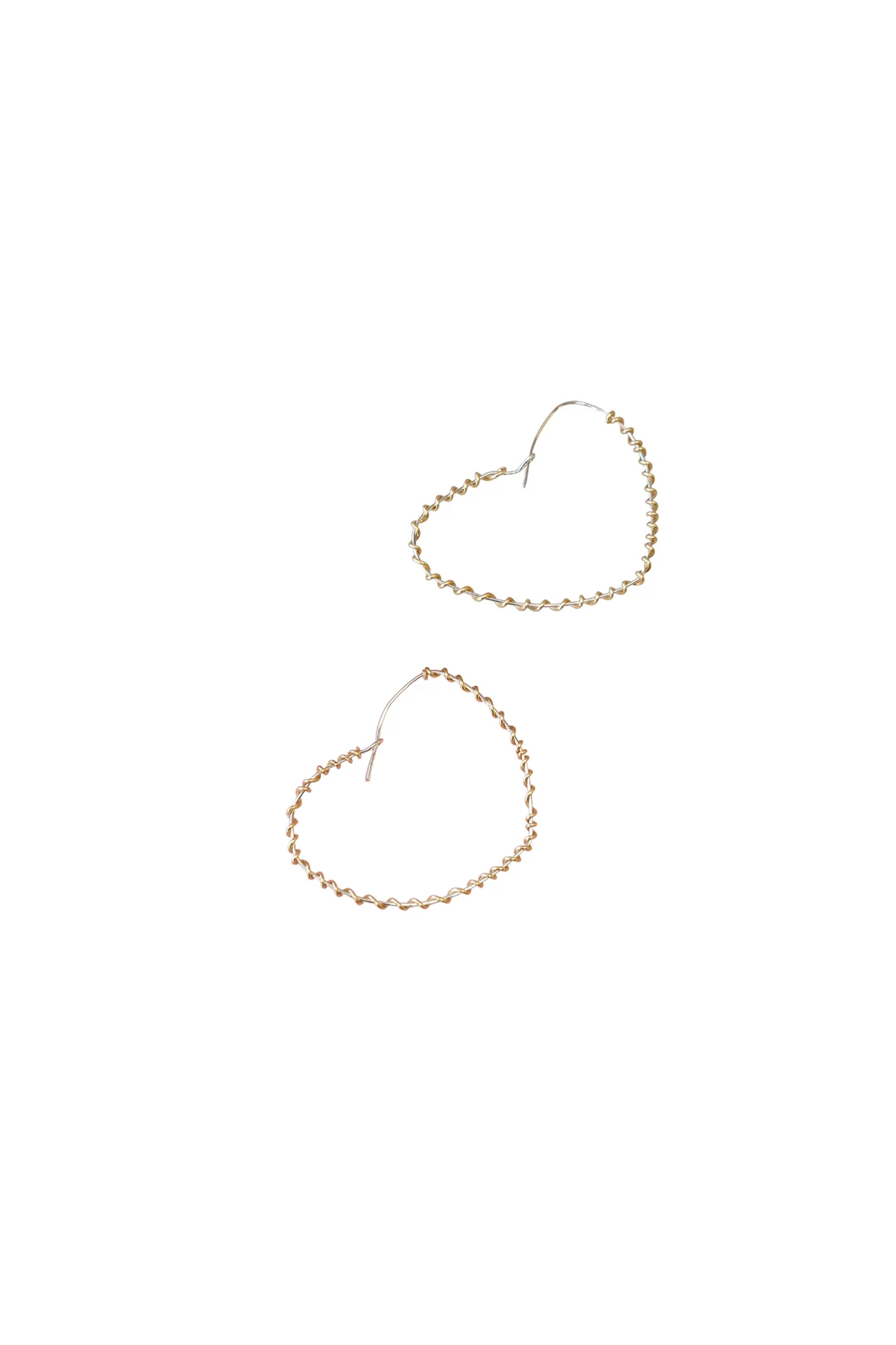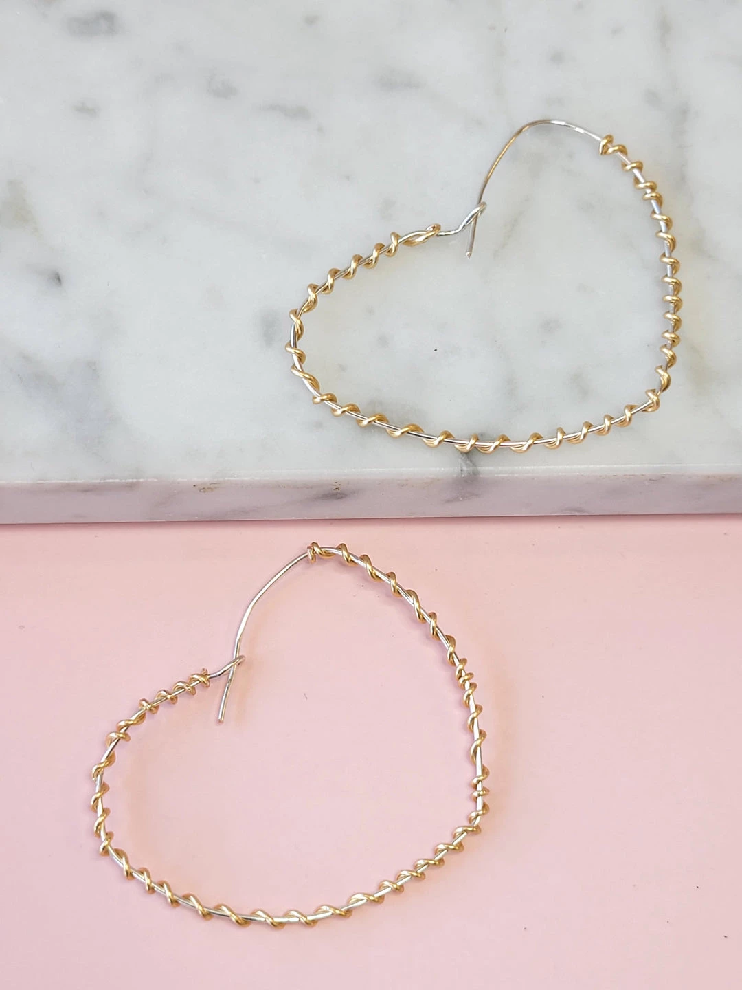 Heart hoop earring handcrafted with a silver heart and gold wrap