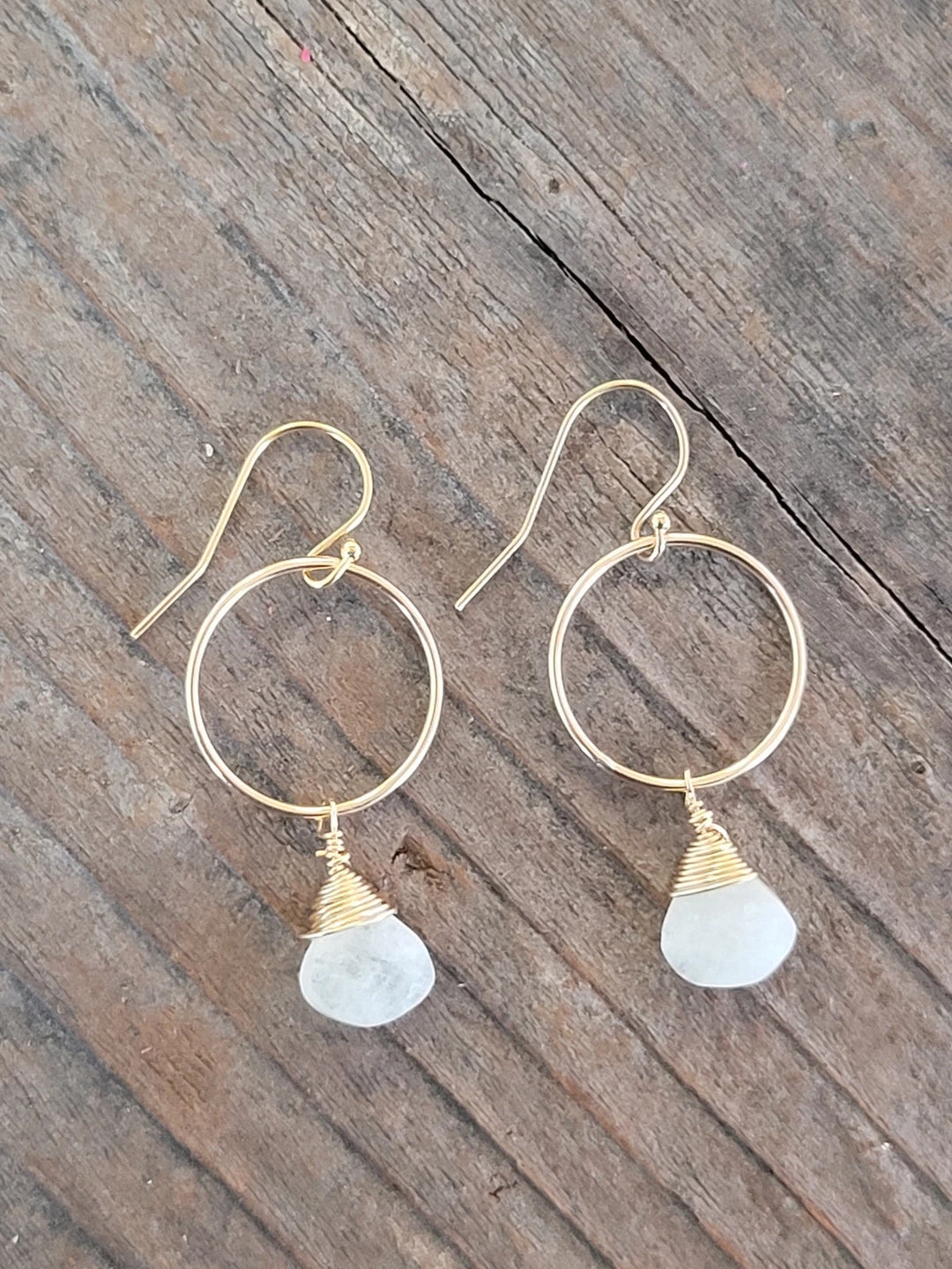 An elegant gold hoop with a gold hand-wrapped Moonstone.