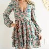 DetailsA beautiful, tiered dress in metallic chiffon. Low cut V to the front and back with a black velvet trim to accentuate the waist. Side zipBased on a size S sample-CB length- 87cm๏ฟฝ๏ฟฝ