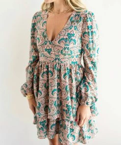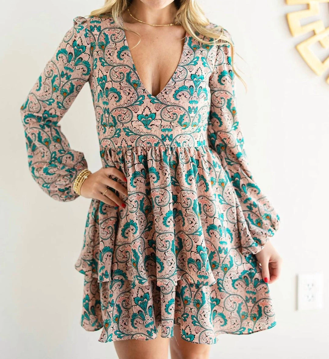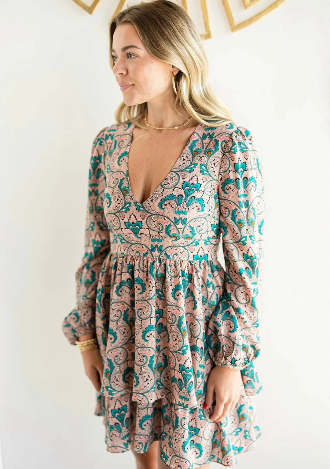This cute little rara mini in a retro paisley is perfect for the summer to winter transition. Double tiered mini with V neck and billow sleeves will be a frim favourite.Based on a size S sample-CB length- 84cmBust- 88cm