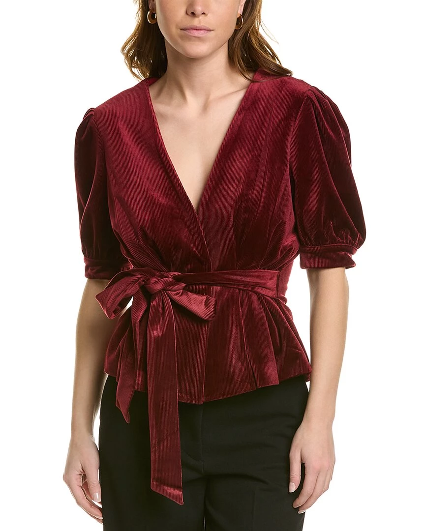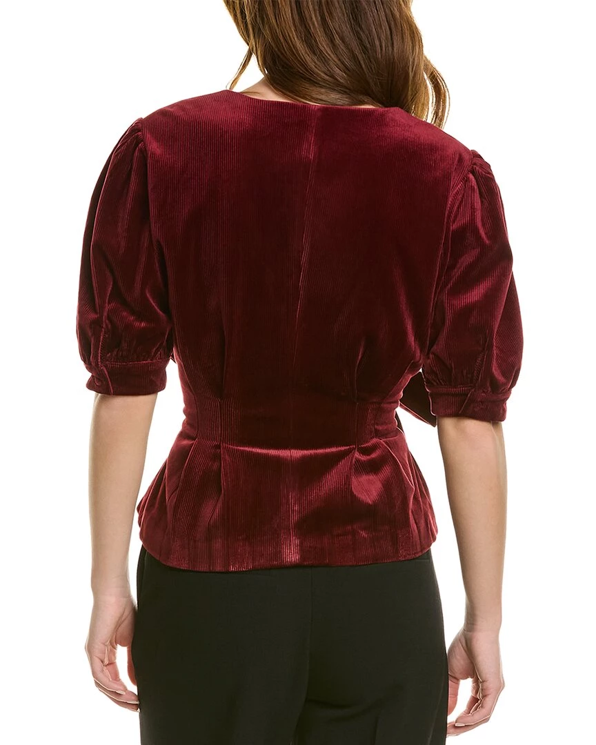 - Design Details – Pleated Puff Sleeves, Pleated Front, Attached Tie Straps
