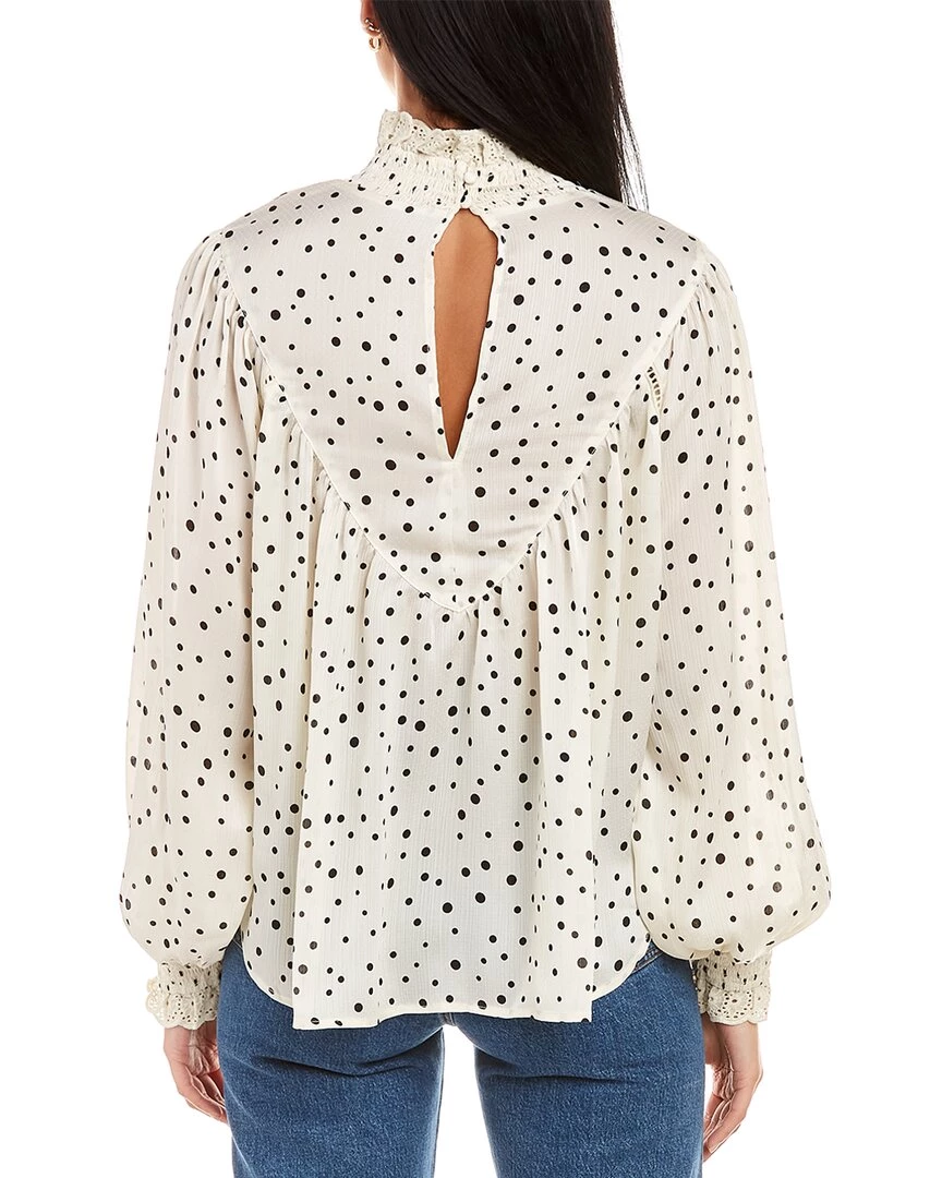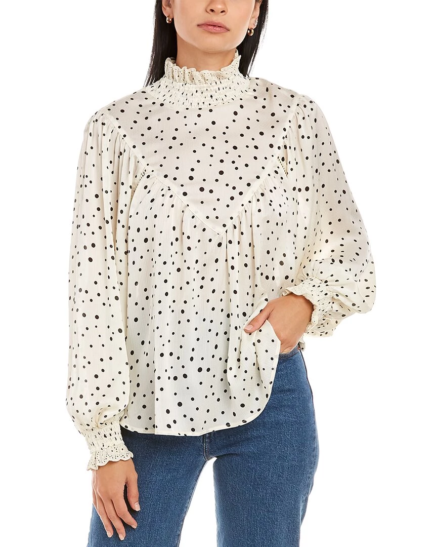 - Design Details – Smocked Mock Neck And Cuffs, Eyelet Ruffle Trim, Ladder Stitch, Balloon Sleeves