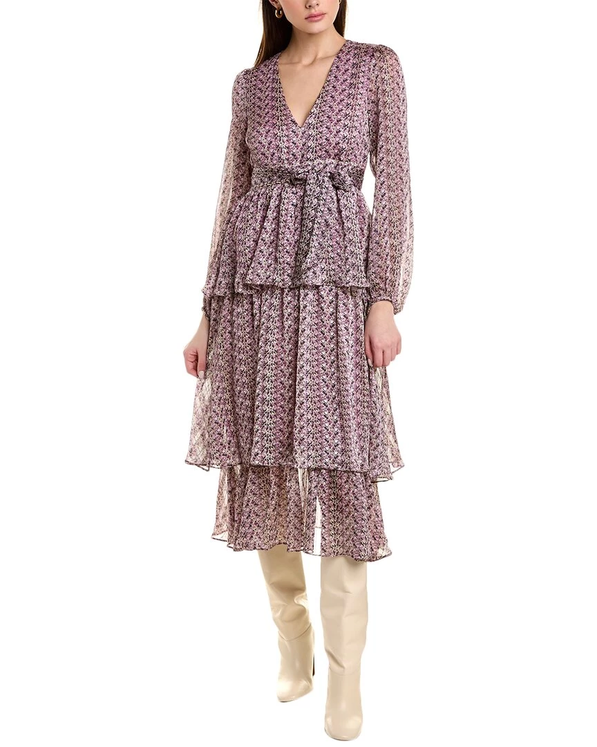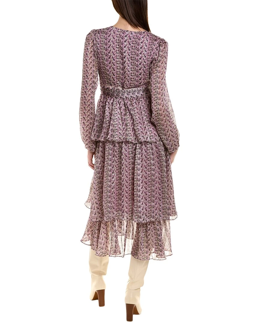 - Design Details – V-Neck, Belt At Waist, Tiered Skirt, Blouson Sleeves